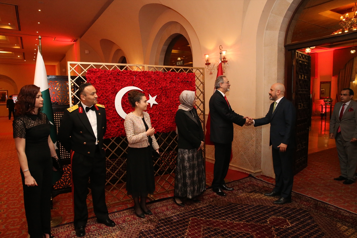 İslamabad Büyükelçisi Mehmet Paçacı’nın ev sahipliğinde başkentte bir otelde düzenlenen resepsiyona Pakistan Savunma Bakanı Khavaja Muhammed Asıf, Pakistan Dışişleri Bakan Yardımcısı Hina Rabbani Khar, milletvekilleri, siyasi parti temsilcileri, yabancı diplomatik misyon temsilcileri, ülkedeki Türk kurum ve kuruluşlarının temsilcileri ile davetliler katıldı.