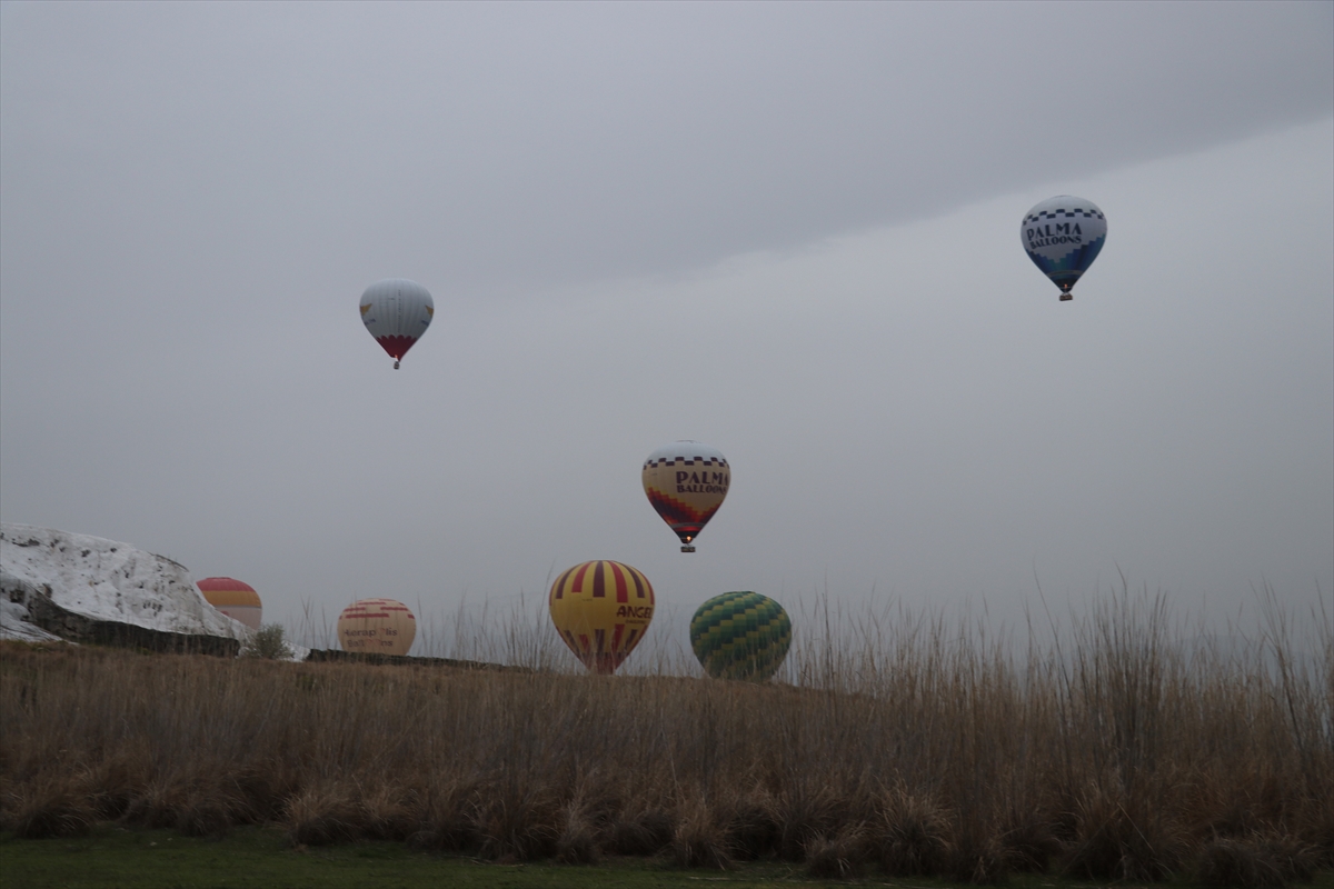 Türkiye'nin gözde turizm merkezlerinden UNESCO Dünya Mirası Listesi'ndeki Pamukkale'yi ziyaret edenler, 45 dakika boyunca travertenlerin üzerinde etkileyici bir balon turuna katılıyor. Balonlar, gün doğumundan önce travertenler bölgesindeki kalkış alanlarına getiriliyor. Uçuş için hazırlanan balonların çevresi ise tura katılmak ve uçuşları izlemek isteyenlerle doluyor.