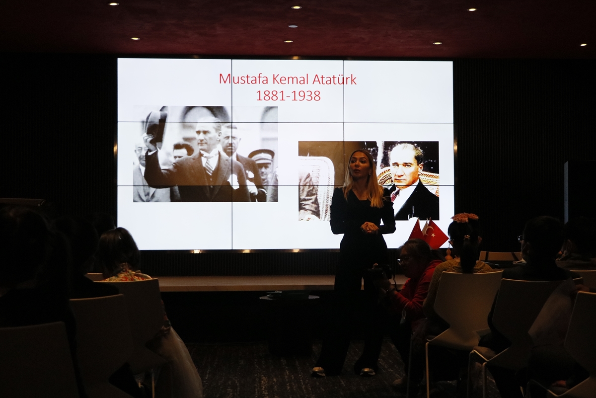 Türkiye'nin dünyadaki konumundan, komşularından, Türk yemeklerinden ve adetlerinden bahsedilen sunumda, Türkiye Cumhuriyeti'nin kurucu önderi Mustafa Kemal Atatürk hakkında da bilgi verildi.