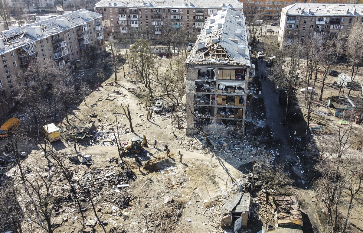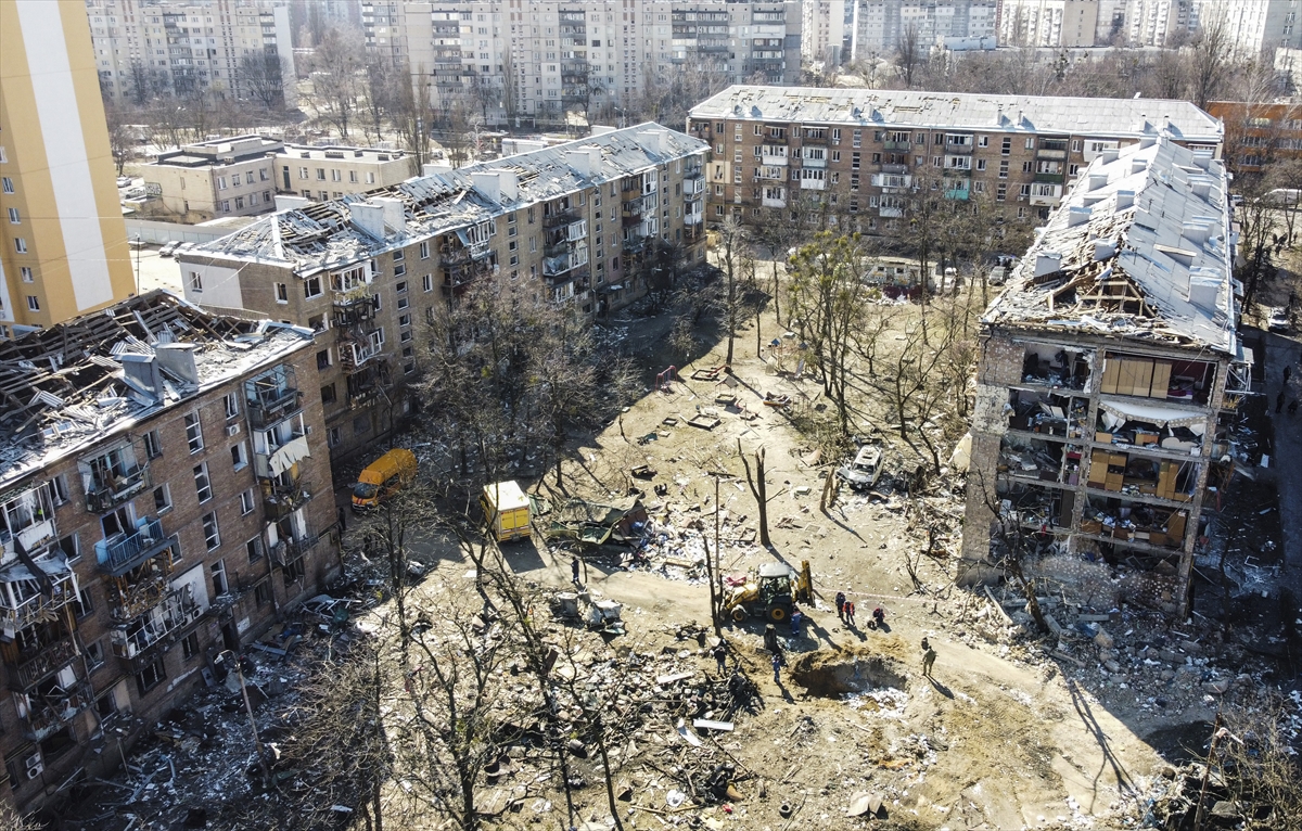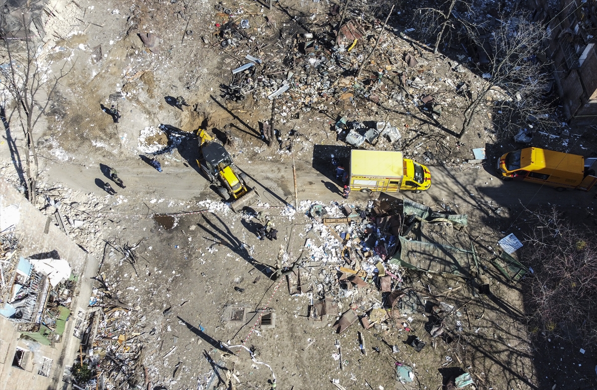 Görgü tanıklarının aktardığına göre, Rus güçlerince atılan bir füze Kiev’in Podilskiy bölgesinde sivillere ait yerleşimlerin olduğu alana düştü.