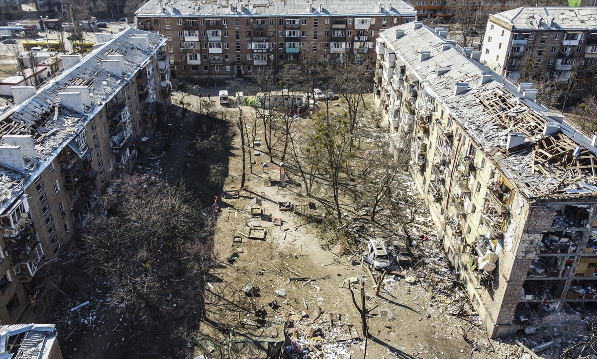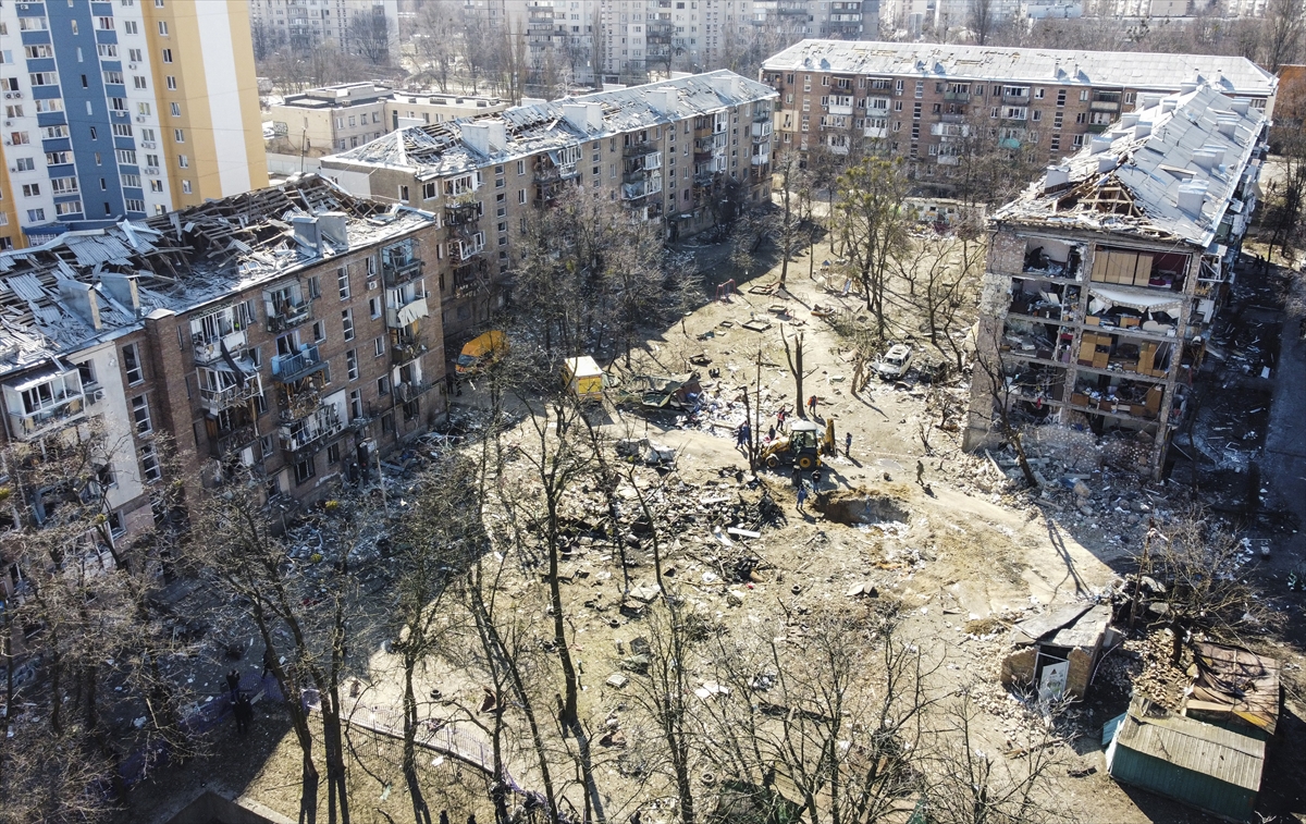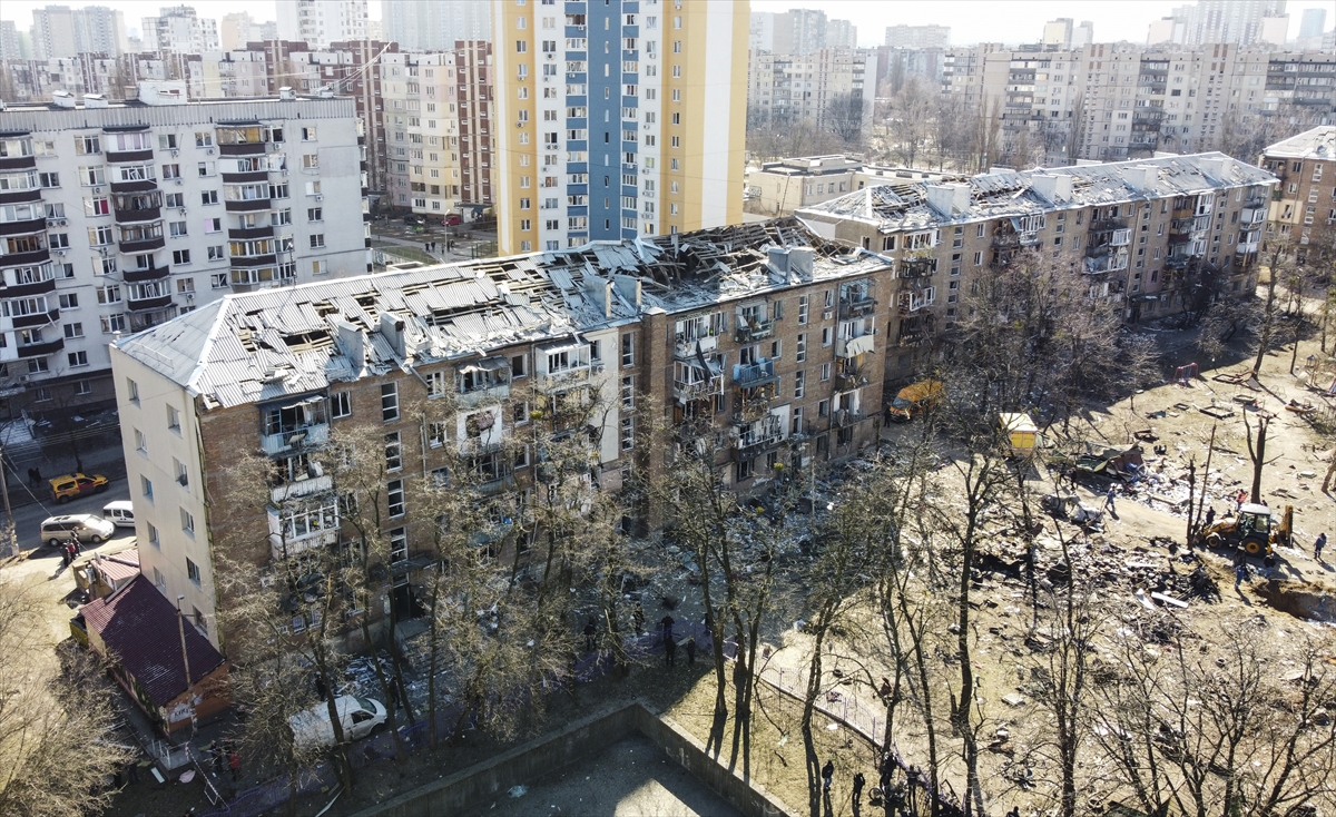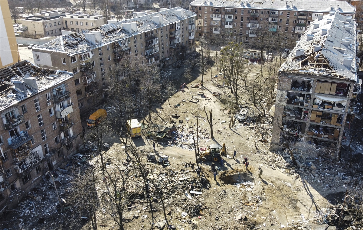 Görgü tanıklarının aktardığına göre, Rus güçlerince atılan bir füze Kiev’in Podilskiy bölgesinde sivillere ait yerleşimlerin olduğu alana düştü.