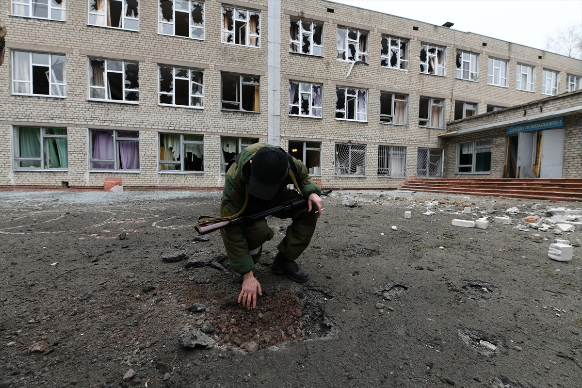 Ayrılıkçı yetkililerin iddiasına göre, Ukrayna ordusu tarafından atılan roket 50 numaralı okulu vurdu.