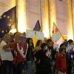 Tiflis'teki parlamento binasının önünde gece saatlerinde toplanan göstericiler, Rusya'da 21 Eylül'de kısmi seferberlik ilan edilmesinden sonra Gürcistan'a Rus akınının durdurulması talebiyle eylem yaptı.