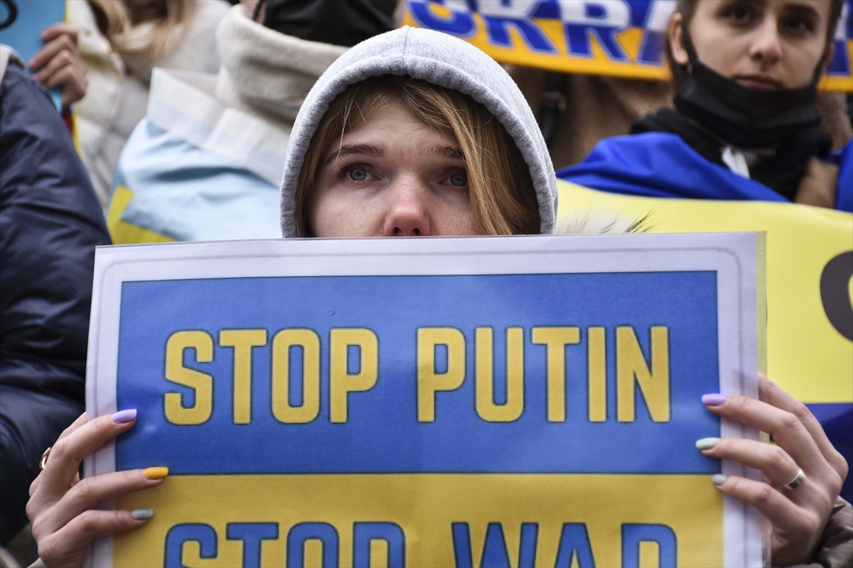 İSTANBUL (AA) – İstanbul'da yaşayan Ukraynalılar, Rusya'nın ülkelerine saldırısını Beyoğlu'nda protesto etti.