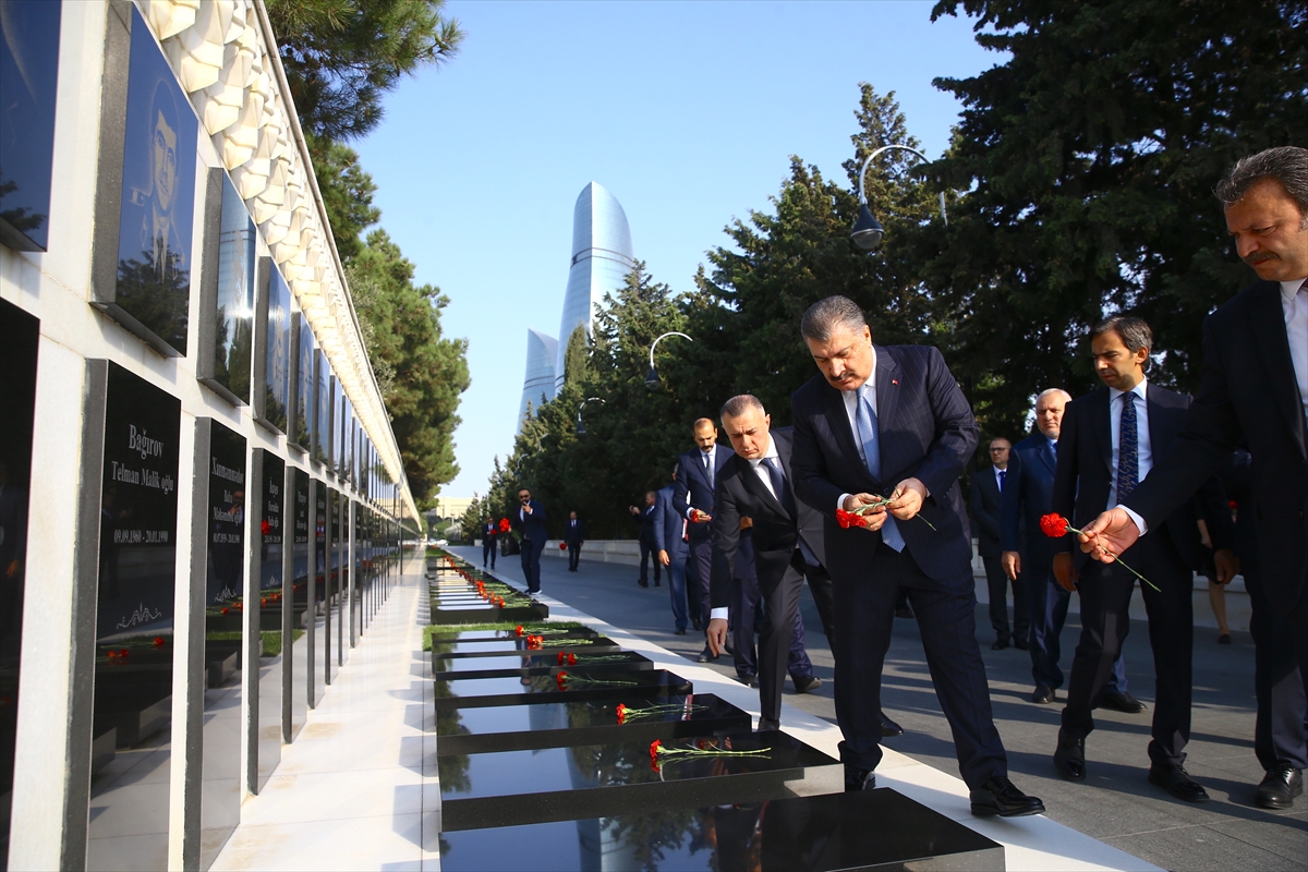 BAKÜ (AA) – Sağlık Bakanı Fahrettin Koca, Türkiye-Azerbaycan Sağlık İş Forumu'na katılmak için geldiği Bakü'de şehitlikleri ziyaret etti.