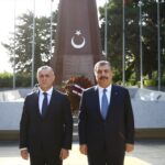 Koca, merhum Cumhurbaşkanı Haydar Aliyev'in Fahri Hiyaban'daki mezarını ziyaret ederek çelenk bıraktı.