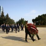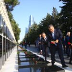 Azerbaycan Sağlık Bakanı Teymur Musayev ve Türkiye'nin Bakü Büyükelçisi Cahit Bağcı'nın eşlik ettiği Koca, daha sonra Bakü Türk Şehitliği'ne geçerek anıta çelenk bıraktı.