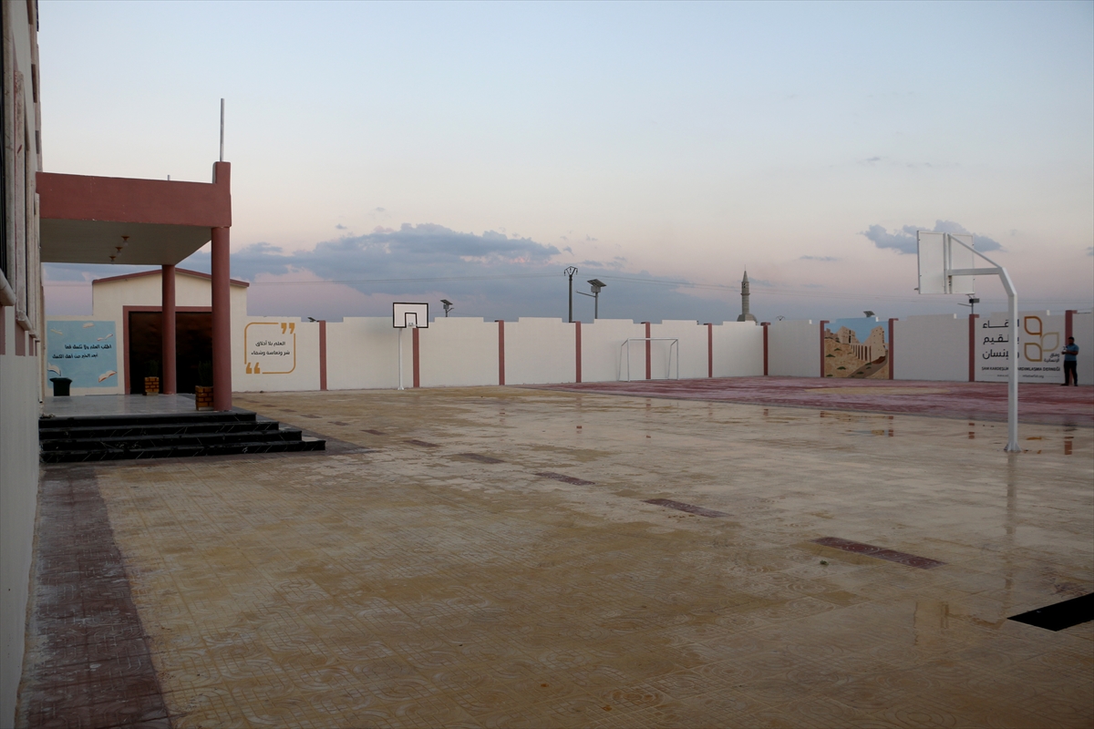 Halep'in kuzeydoğu kırsalında bulunan Soran köyündeki İhtimlat Kampı'nda inşa edilen 2 katlı, 13 derslikli okulda çocuklar eğitime başladı.
