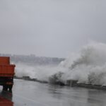 Olumsuz hava koşullarının etkili olduğu bölgede boyu 5 metreyi bulan dalgalar, Doğupark'taki sahil yoluna ve duvarlara zarar verdi.