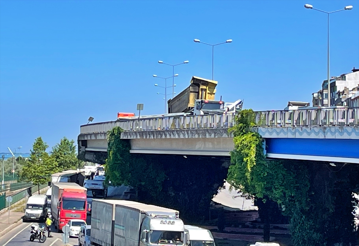 Samsun-Ordu kara yolundan Samsun yönüne seyreden, sürücüsünün kimliği öğrenilemeyen 55 AAK 223 plakalı kamyonun damperi, Belediyeevleri mevkisindeki viyadük üzerinde açıldı. Bunu fark etmeyen sürücü ilerlemeye devam etti.