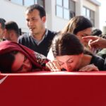 Bu sırada aile yakınları Türk bayrağına sarılı tabuta sarılarak bir süre ağladı.