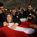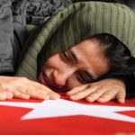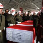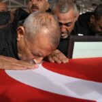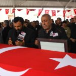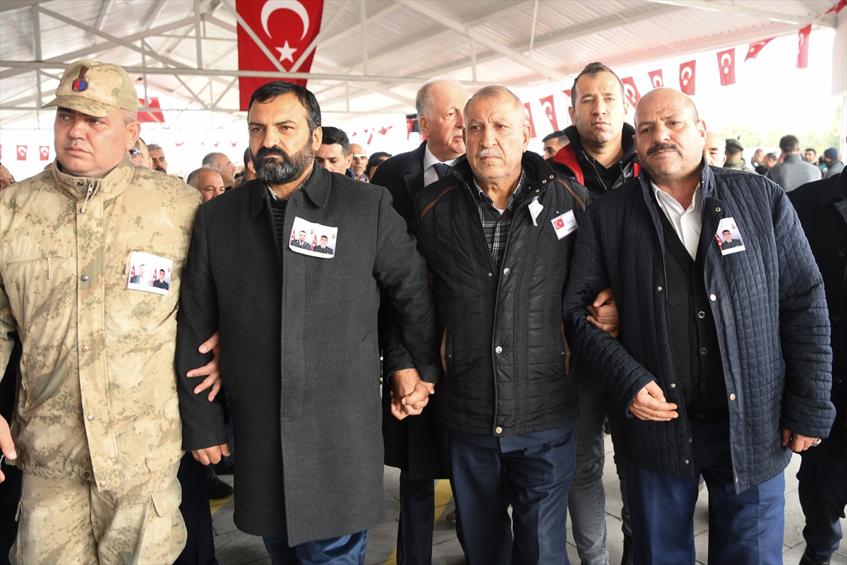 Törene katılan ve aynı harekat sırasında şehit düştükten sonra dün toprağa verilen Teğmen Öztürkmen’in babası Derde Öztürk ise şehit babası Celal Uğurlu’nun elini tutarak destek oldu.