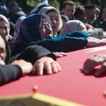 Şehidin, cami avlusuna getirilen tabutunun başında askerler nöbet tuttu. Şehidin ailesi ve yakınları cami avlusunda taziyeleri kabul etti.