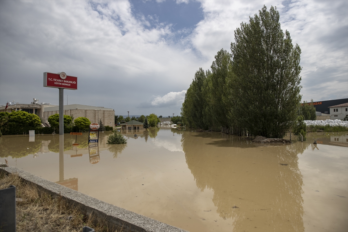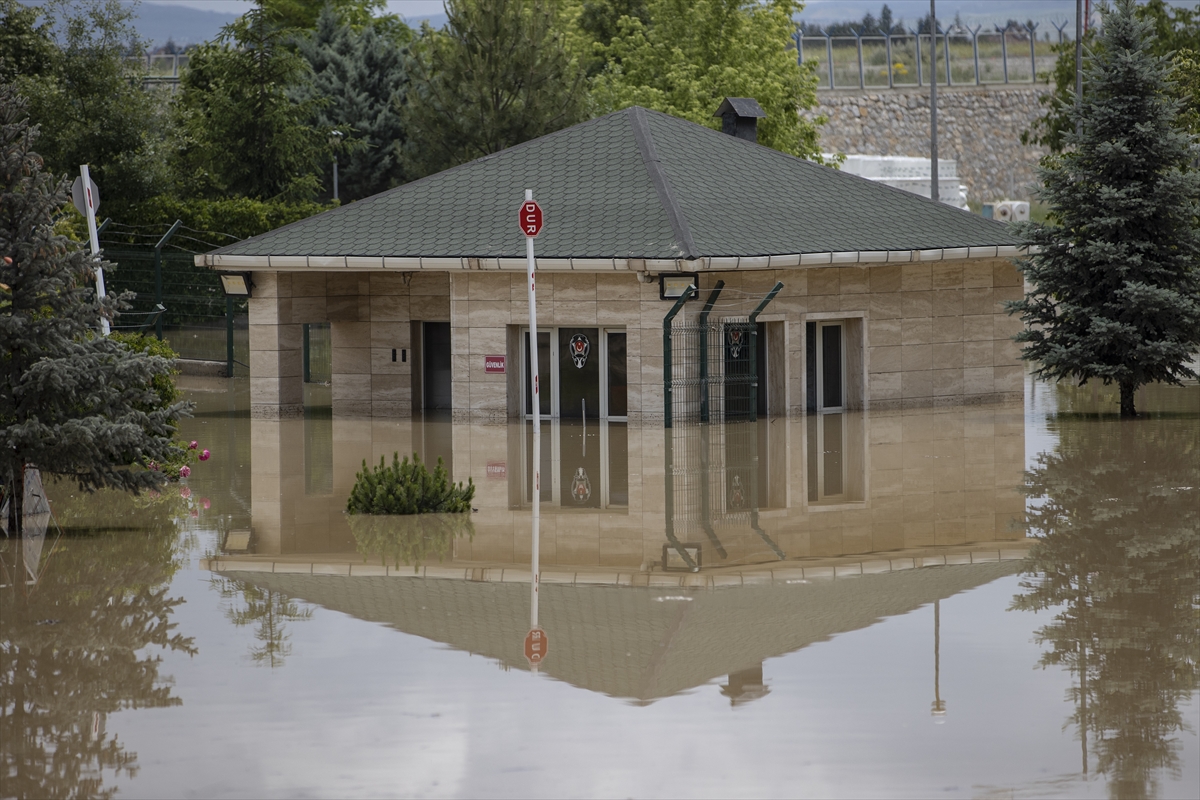 Akyurt'ta etkili olan yağış nedeniyle Esenboğa Havalimanı girişi yakınlarındaki Ticaret Bakanlığı Eğitim Merkezi ile yanındaki özel firmaya ait depolar da su altında kaldı.