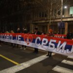 Başkentteki Cumhurbaşkanlığı binası önünde toplanan yüzlerce kişi, Kosova'nın kuzeyinde 7 gündür nöbet tutan Kosovalı Sırplara dayanışma mesajı gönderdi.