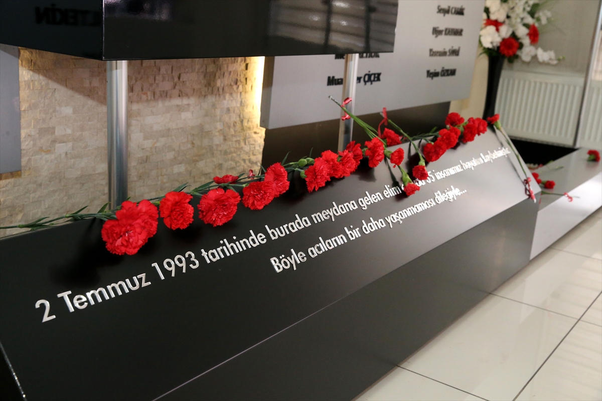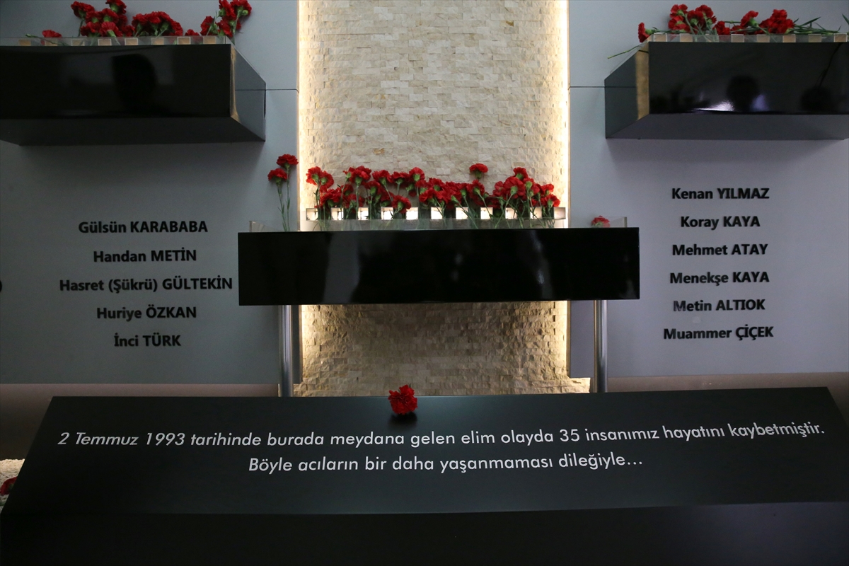 SİVAS (AA) – Sivas Valisi Yılmaz Şimşek ve beraberindekiler, kentte 2 Temmuz 1993'te çıkan olaylarda hayatını kaybedenler için eski Madımak Oteli binasında oluşturulan anı köşesine karanfil bıraktı.