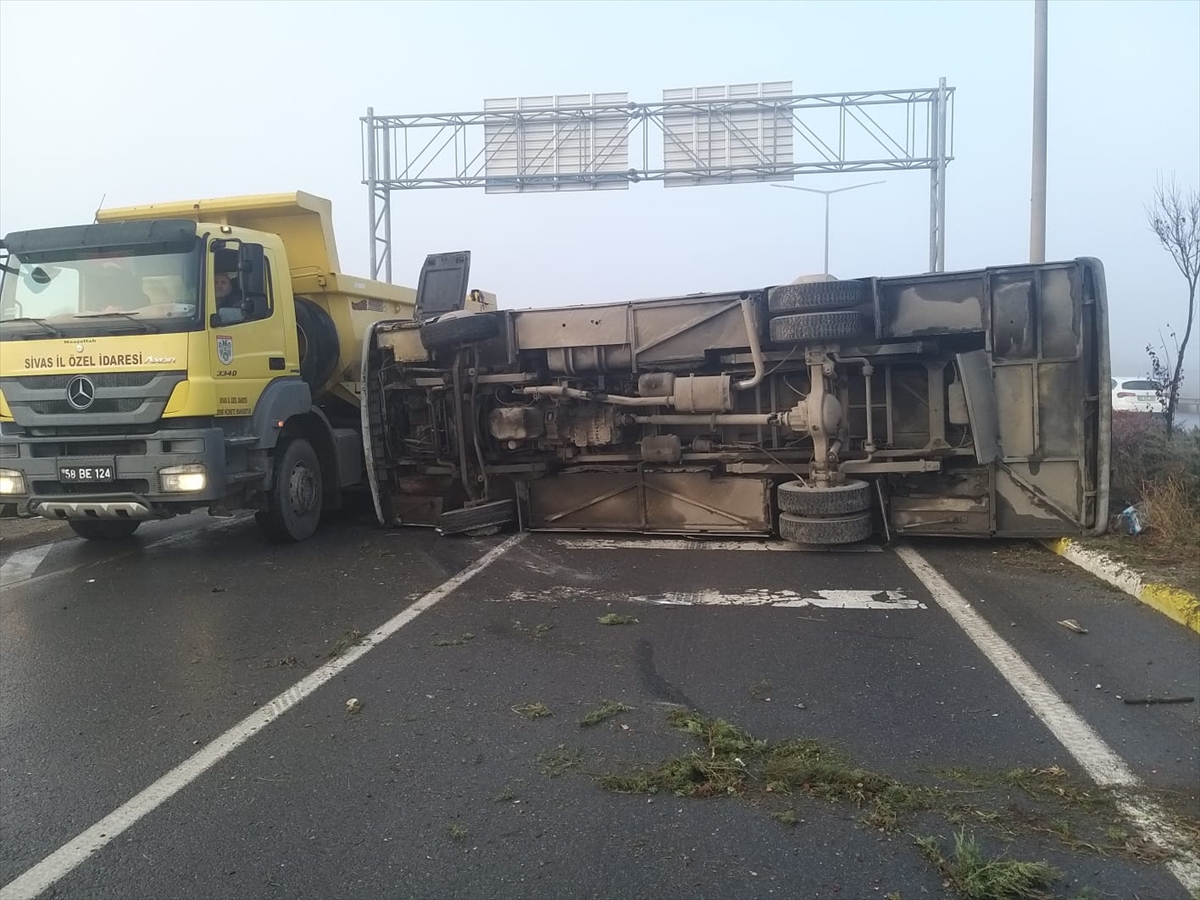 F.K. yönetimindeki 58 ADH 781 plakalı işçi servis midibüsü, Sivas-Erzincan kara yolu Otogar Köprüsü mevkisinde devrildi.