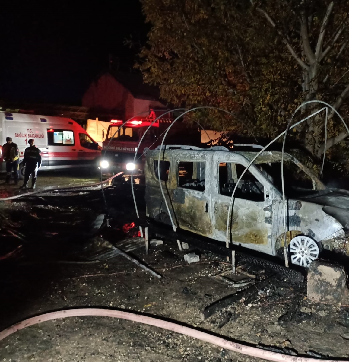 İhbar üzerine bölgeye gelen itfaiye ekiplerince söndürülen yangında, depo ile kamyonet ve traktör tamamen yandı.