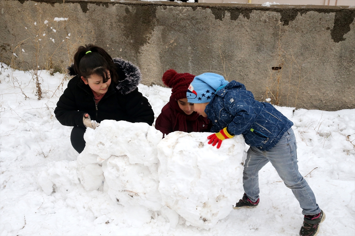 Kent merkezinde kar yağışının ardından çocuklar kızakla kayıp kardan adam yaparak yarıyıl tatilinin keyfini çıkardı.