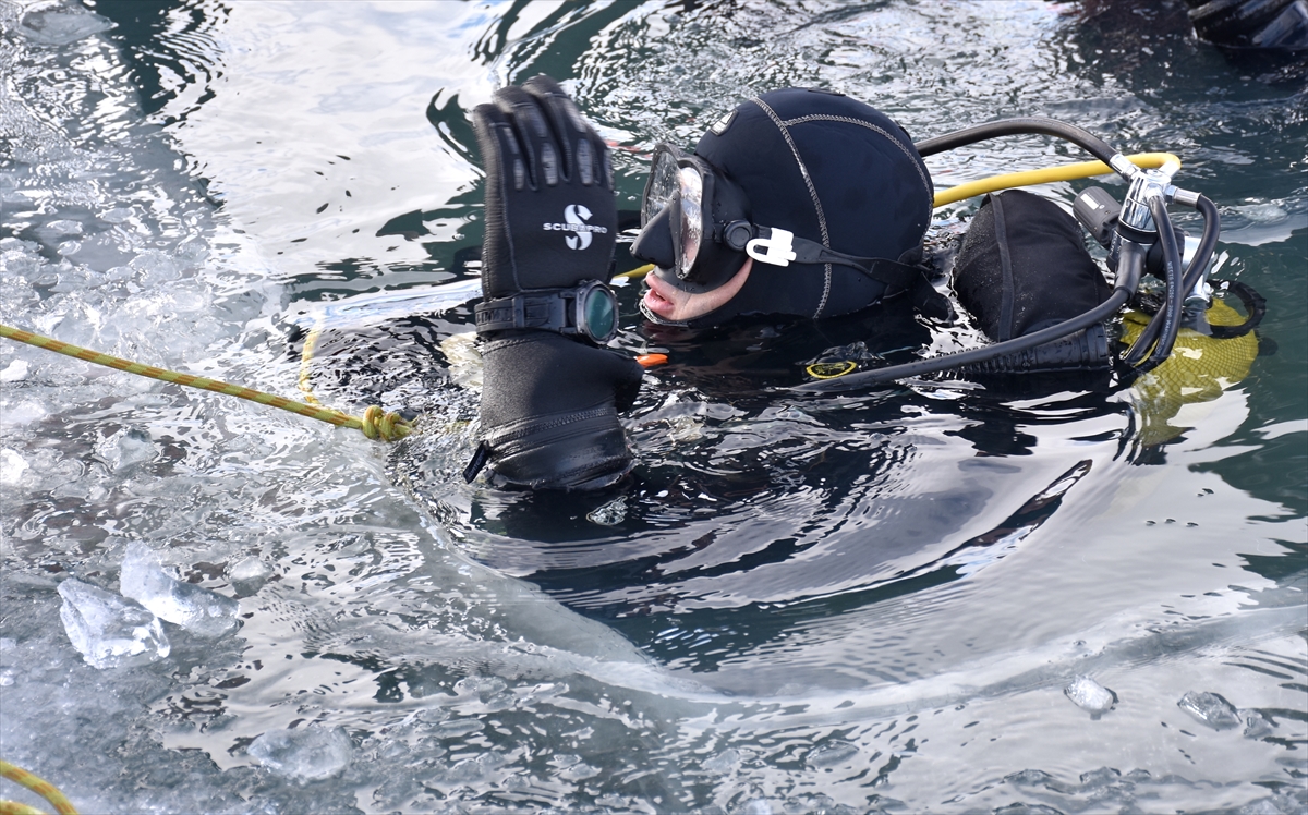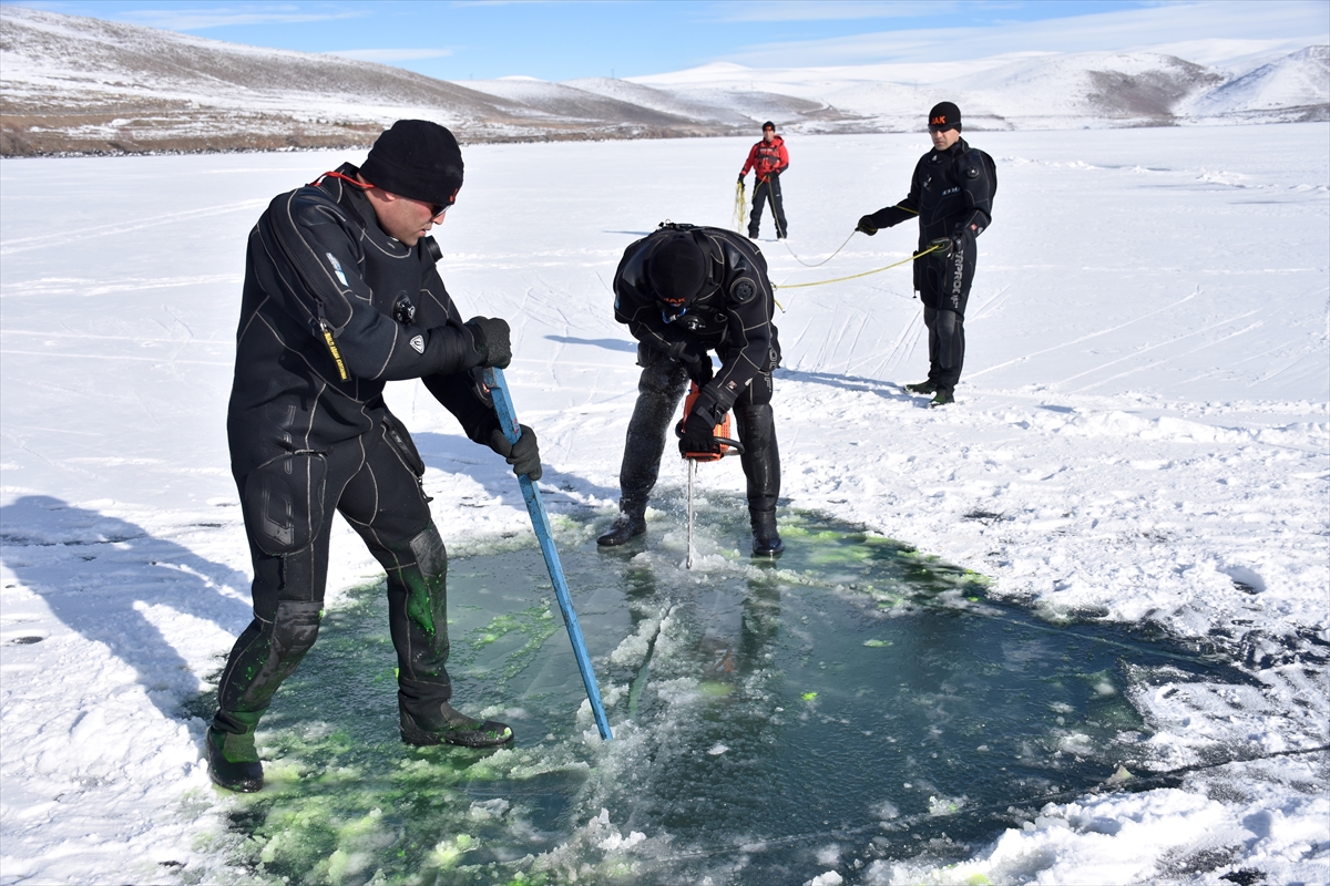 Yüksek irtifa ve buzlu suya dalış eğitimleri kapsamında Ardahan ile Kars illeri arasındaki Çıldır Gölü'nde kampa giren timler, hava sıcaklığının sıfırın altında 9 dereceye düştüğü 1950 metre rakımlı gölde yaklaşık 10 metre suya daldı.