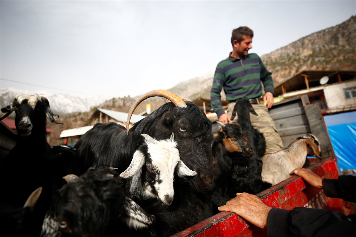 İlçeye bağlı Ulupınar Mahallesi'ndeki besicileri, havaların ısınmasıyla keçi ve oğlaklarını yaylaya götürme telaşı sardı. Keçilerin çobanlar eşliğinde yola çıktığı mahallede, römorklara yüklenen oğlaklar ise traktörlerle Aksu Vadisi girişine getirilerek keçilerle buluşturuluyor.