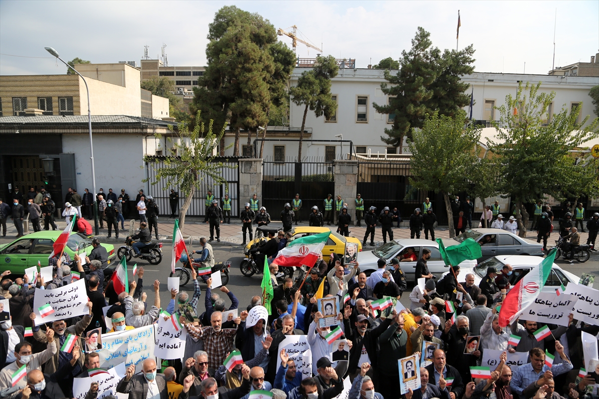 TAHRAN (AA) – İran’ın başkenti Tahran’da, Almanya’nın Tahran Büyükelçiliği önünde toplanan kalabalık, protesto gösterisi düzenledi.