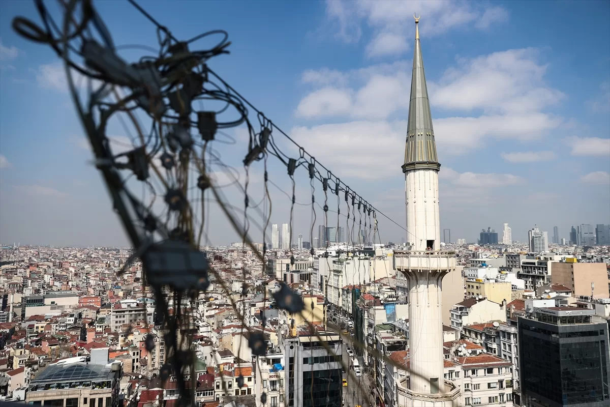 İSTANBUL (AA) – Taksim Camisi'nin minareleri arasına ramazana günler kala "Elhamdülillah" yazılı mahya asıldı.