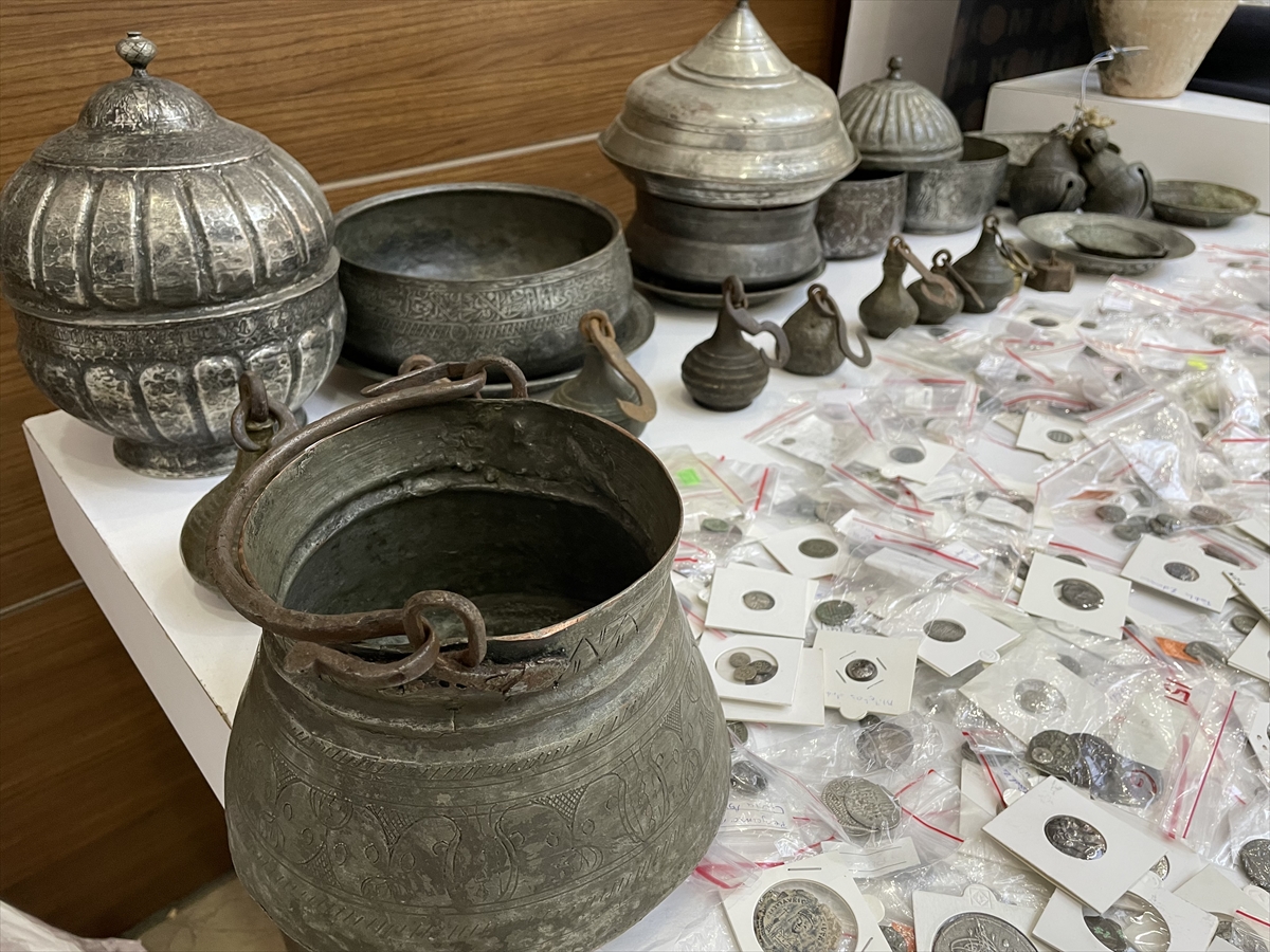 Polis ekipleri tarafından yapılan aramalarda ele geçirilen ve Roma, Bizans, Osmanlı dönemi ile Türk-İslam dönemlerine ait olduğu düşünülen 4 bin 844 adet sikke ve çeşitli form ve biçimlerde 901 adet obje olmak üzere toplam 5 bin 829 adet tarihi eser Vatan Caddesi'ndeki emniyet yerleşkesinde sergilendi.