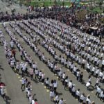TEKİRDAĞ (AA) – Tekirdağ'da TBMM'nin kuruluşunun 102. yılına özel programda, Meclis'in açılış tarihine atfen 1920 öğrenci Trakya halayı çekti.