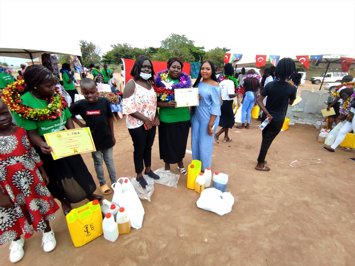 Güney Sudan'da faaliyet gösteren Değişimci Kadınlar Derneği üyesi 78 kadın, TİKA’nın desteğiyle 4 ay terzilik ve sabun üretimi konularında mesleki eğitim aldı.