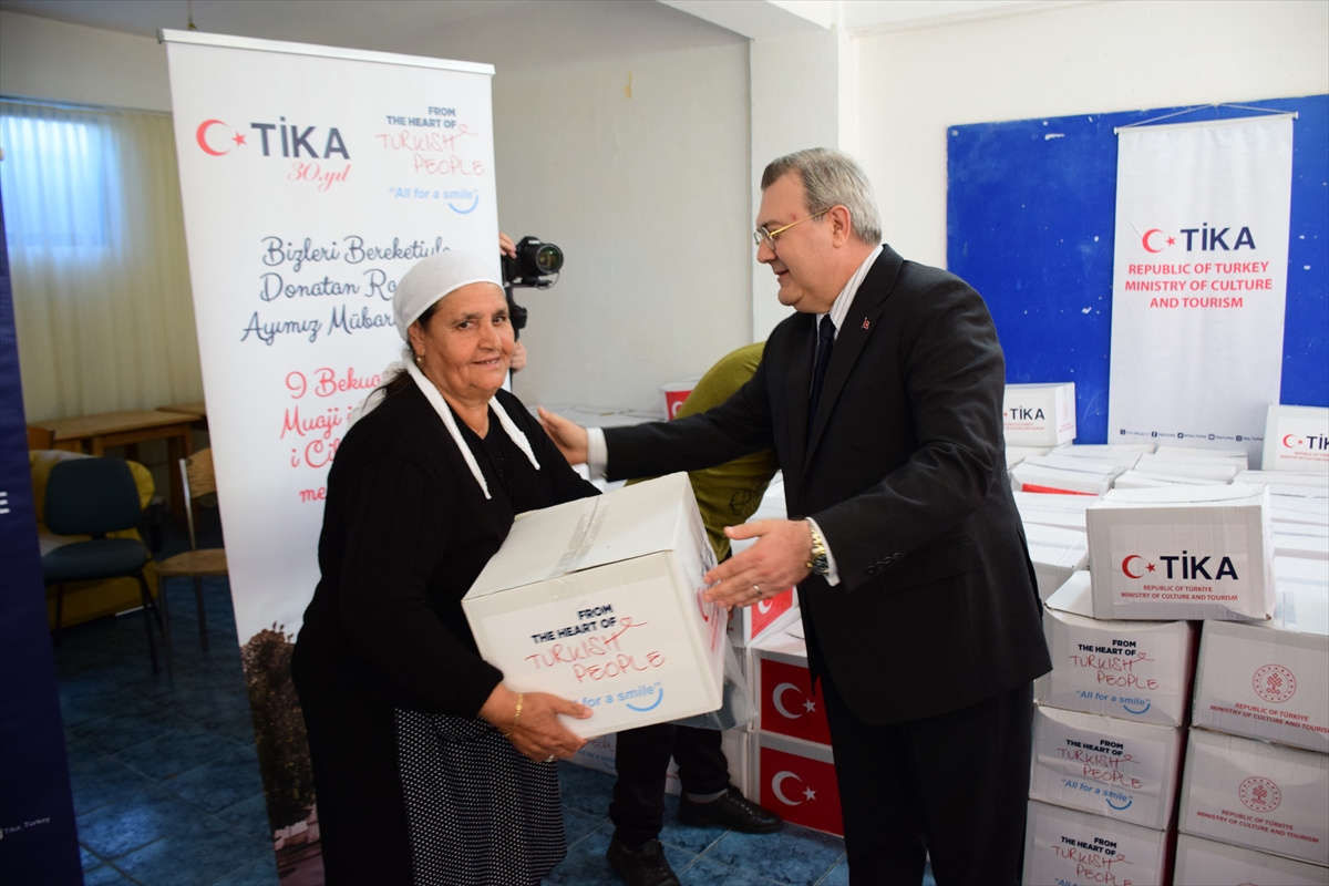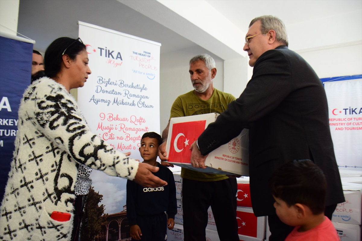 Gıda paketlerinin dağıtımına Türkiye'nin Tiran Büyükelçisi Murat Ahmet Yörük, TİKA Tiran Koordinatörü Emine Gizem Başkan ile Arnavutluk merkezli Entegrasyon İçin Romanlar Derneği temsilcileri katıldı.