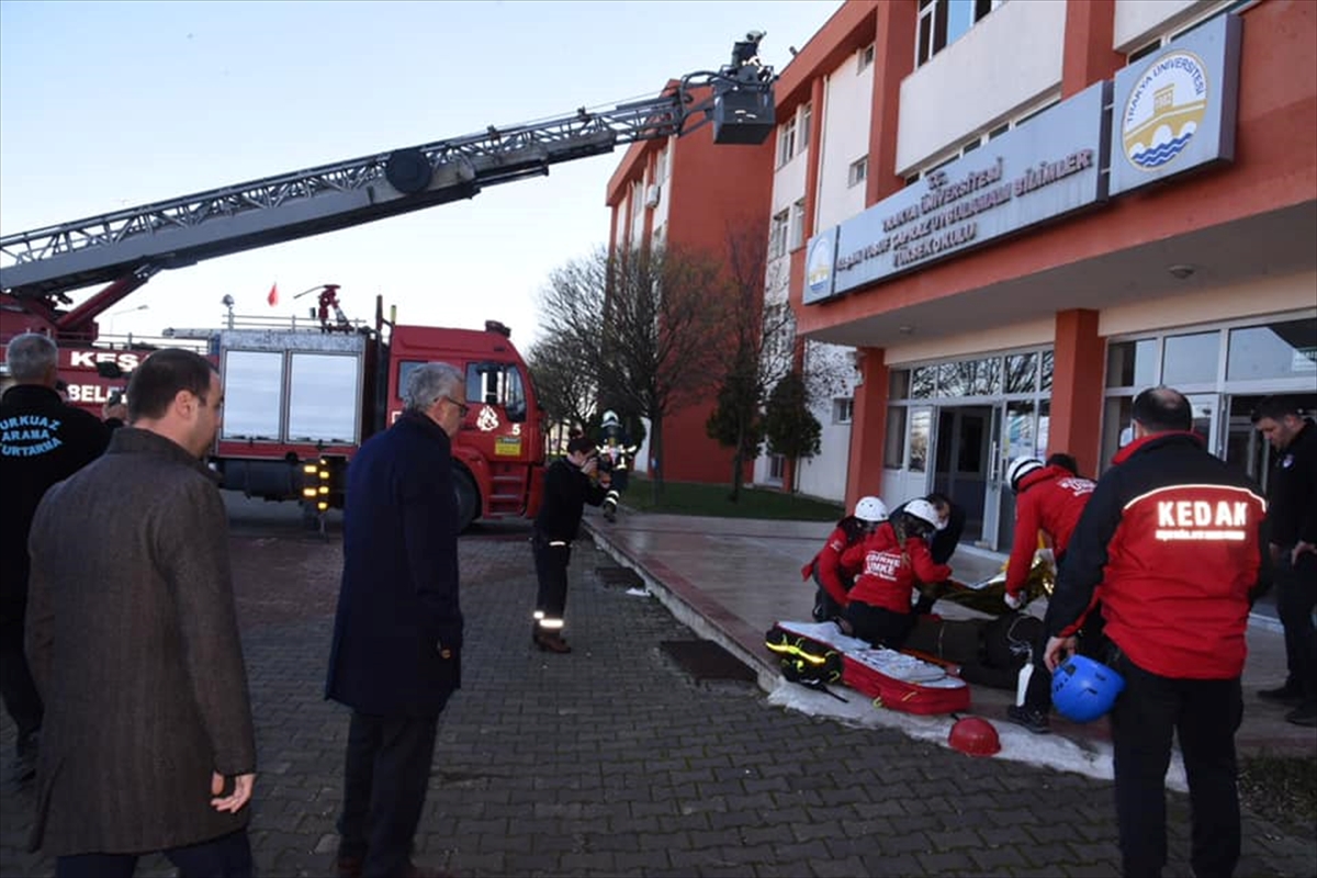 EDİRNE (AA) – Trakya Üniversitesinde kapsamlı deprem tatbikatı gerçekleştirildi.