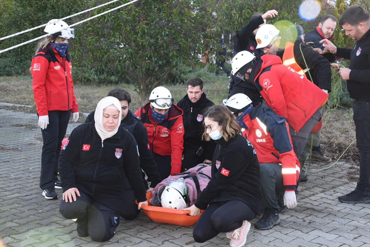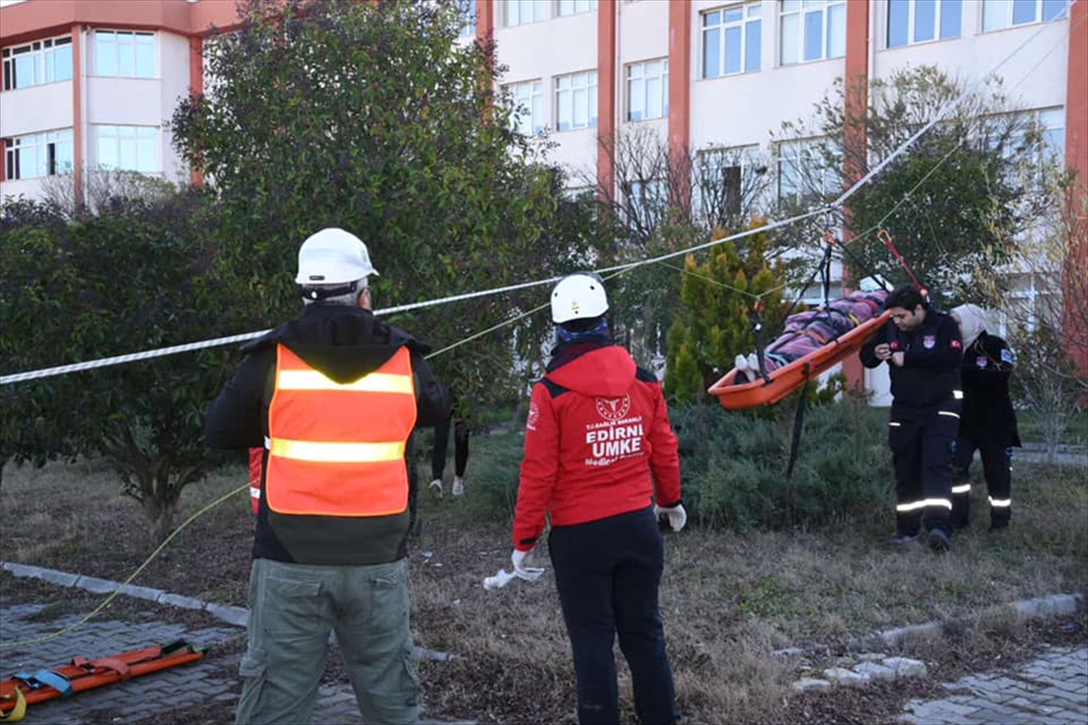 Edirne'nin Keşan ilçesindeki Yusuf Çapraz Uygulamalı Birimler Yüksek Okulunda arama kurtarma, acil sağlık, itfaiye, sivil toplum kuruluşlarının katılımıyla tatbikat yapıldı.