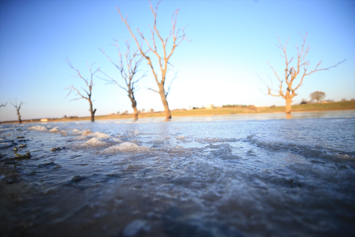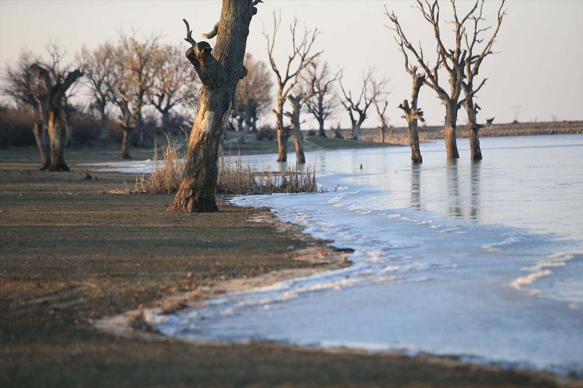 Soğuk hava nedeniyle süs havuzları ile Karahıdır Göleti kısmen buz tuttu.