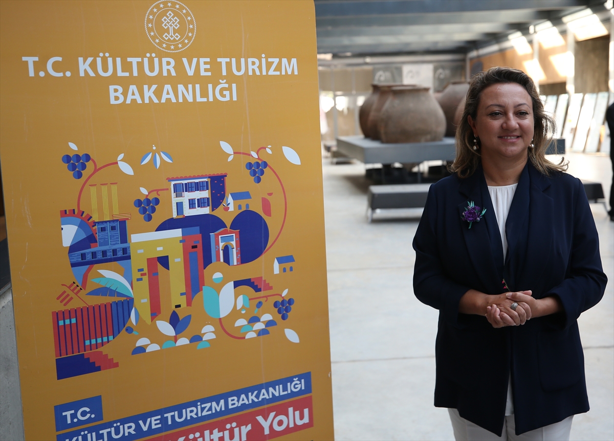 Kültür ve Turizm Bakan Yardımcısı Özgül Özkan Yavuz'a, Troya Müzesi Müdürü Rıdvan Gölcük tarafından sergiler hakkında bilgi verildi.