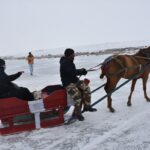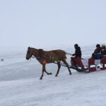 KARS (AA) – Yeni tip koronavirüs (Kovid-19) salgınıyla mücadele tedbirleri kapsamında ara verilen seferlerine yeniden başlayan "Turistik Doğu Ekspresi"nin yolcuları kısmen buzla kaplanan Çıldır Gölü'nde atlı kızakla gezdi.