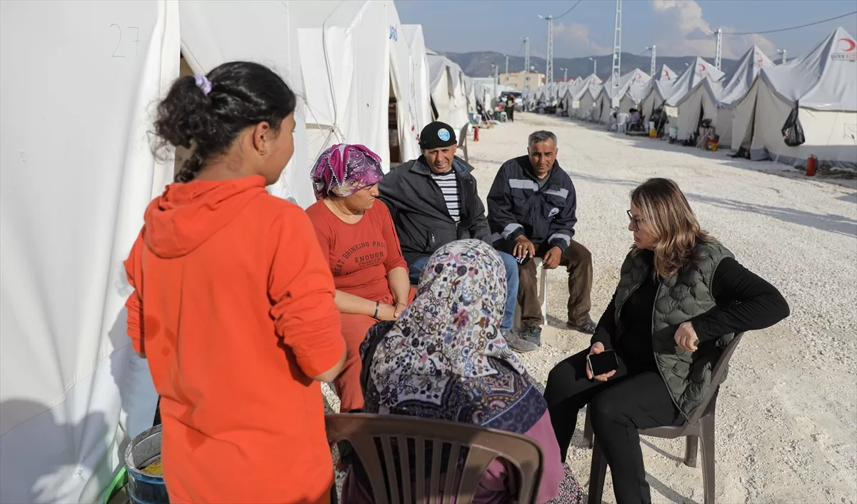 HATAY (AA) – Türk Hukukçu Kadınlar Derneği Başkanı Süreyya Turan, 8 Mart Dünya Kadınlar Günü dolayısıyla Hatay'da depremden etkilenen kadınlarla bir araya geldi.