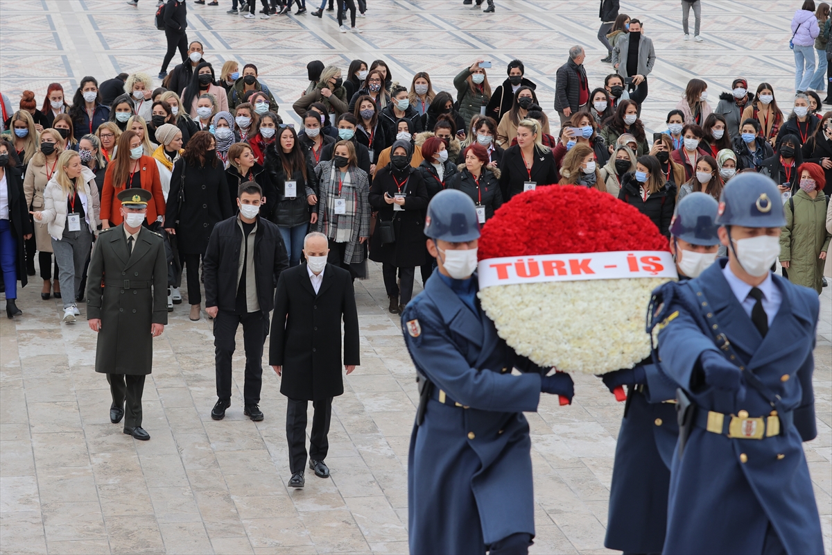 ANKARA (AA) – Türk-İş Genel Başkanı Ergün Atalay, Türkiye'nin farklı şehirlerinden gelen 200 konfederasyon üyesi kadınla, "Kadına Yönelik Şiddete Karşı Uluslararası Mücadele Günü" dolayısıyla Anıtkabir'e ziyarette bulundu.
