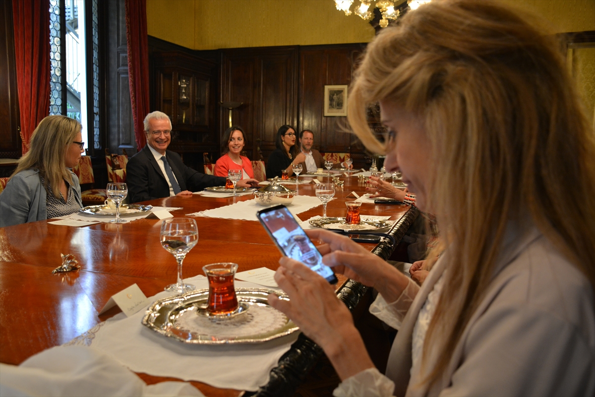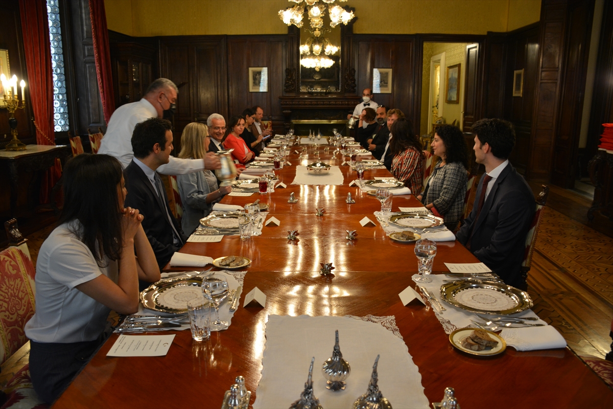 Davette, konuklara Büyükelçilik Aşçısı Turgay Holat'ın hazırladığı incirli yaprak sarma, zeytinyağlı enginar, balık pilaki, hünkar beğendi ve kabak tatlısı ikram edildi.