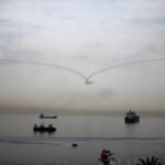Gösteriye yoğun ilgi gösteren ilçe sakinleri, sahil kordonunda cep telefonu kameralarıyla etkinliği kaydetti.