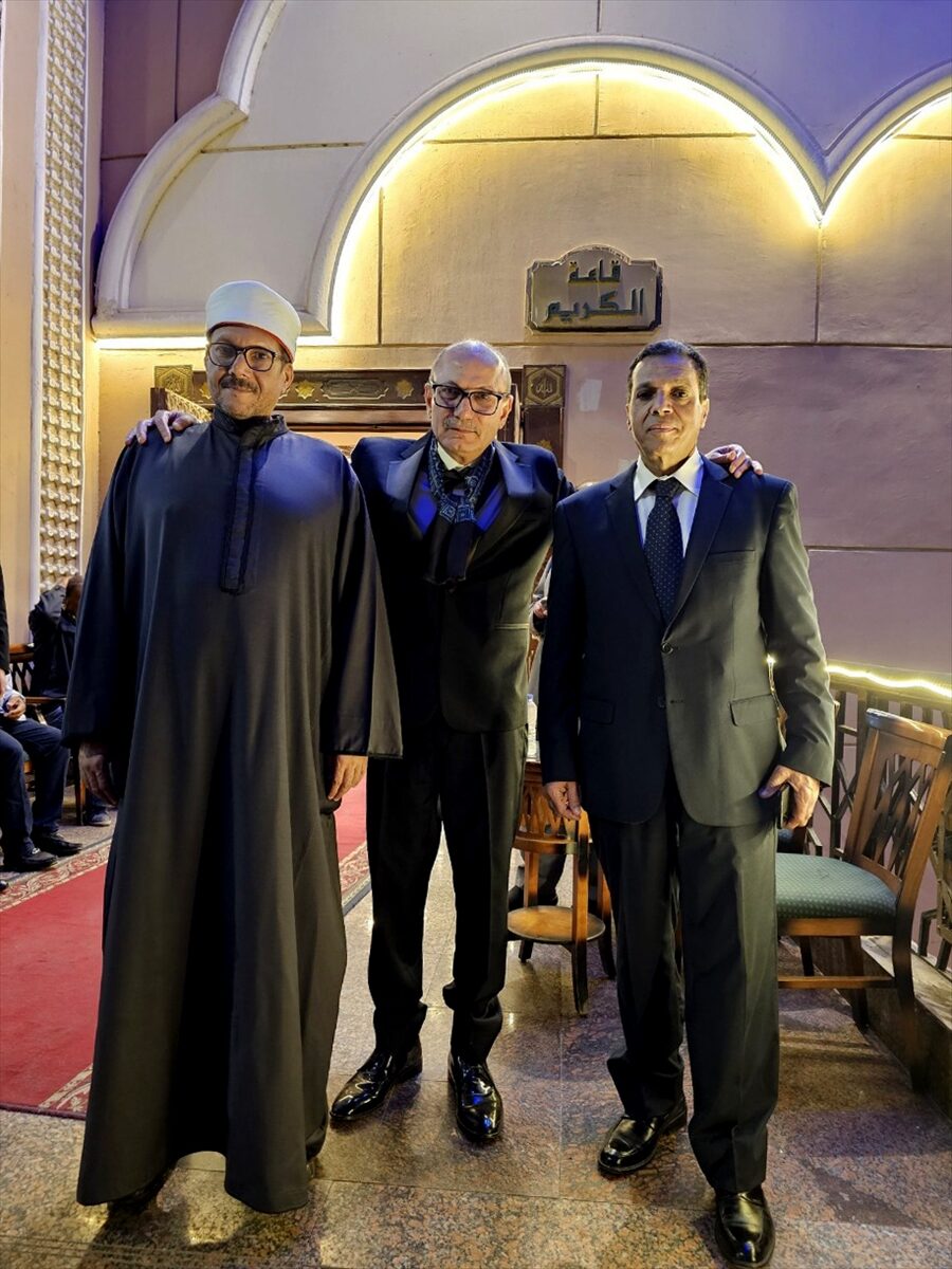 Büyükelçi Şen, merhum İsam Abdulbasit Abdussamed'in kardeşleri İmam Yasir Abdulbasit ile Tarık Abdulbasit'e Kahire Polis Cami'nde taziye ziyaretinde bulundu.