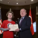 WASHINGTON (AA) – Türkiye'nin Washington Büyükelçisi Hasan Murat Mercan, 6 Şubat'ta meydana gelen Kahramanmaraş merkezli 7,7 ve 7,6 büyüklüğündeki depremlerden etkilenenler için düzenlenen yardım kampanyasına katılan gönüllülere teşekkür belgesi verdi.