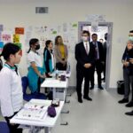 Maarif Okulu Müdürü ve ilgililerin eşliğinde bilgisayar ve kimya sınıflarını ve kütüphanesini gezerek kompleks hakkında bilgi alan Er, ilkokul öğrencilerle sohbet etti ve daha sonra okulun konferans salonunda ortaokul ve lise öğrencilerine hitap etti.