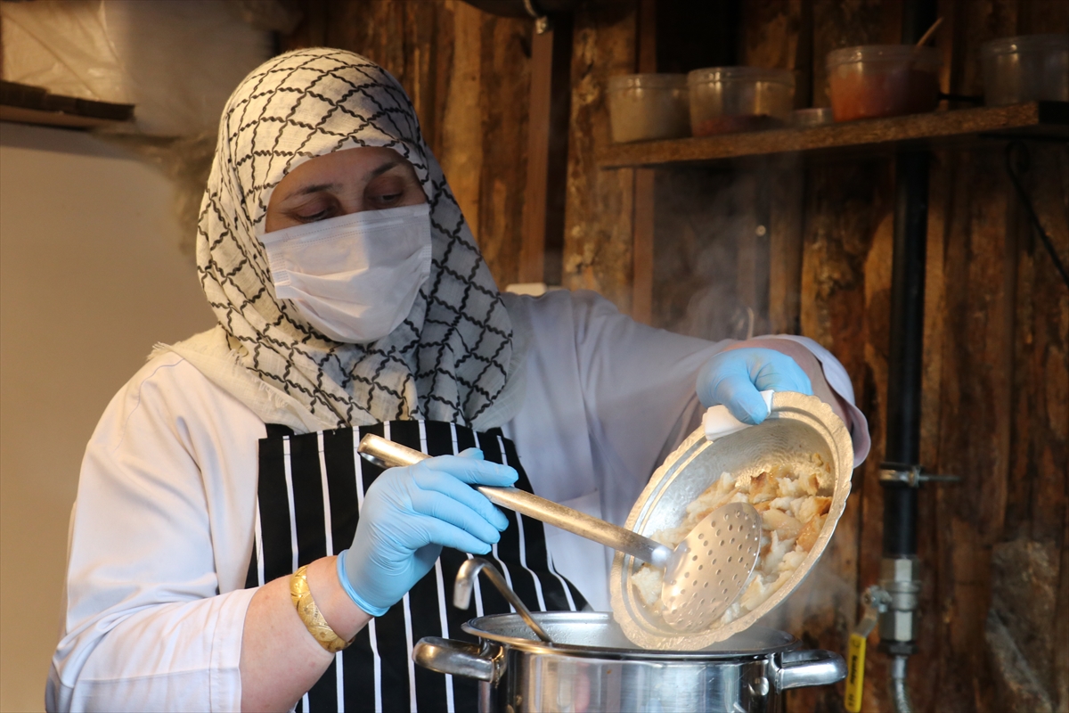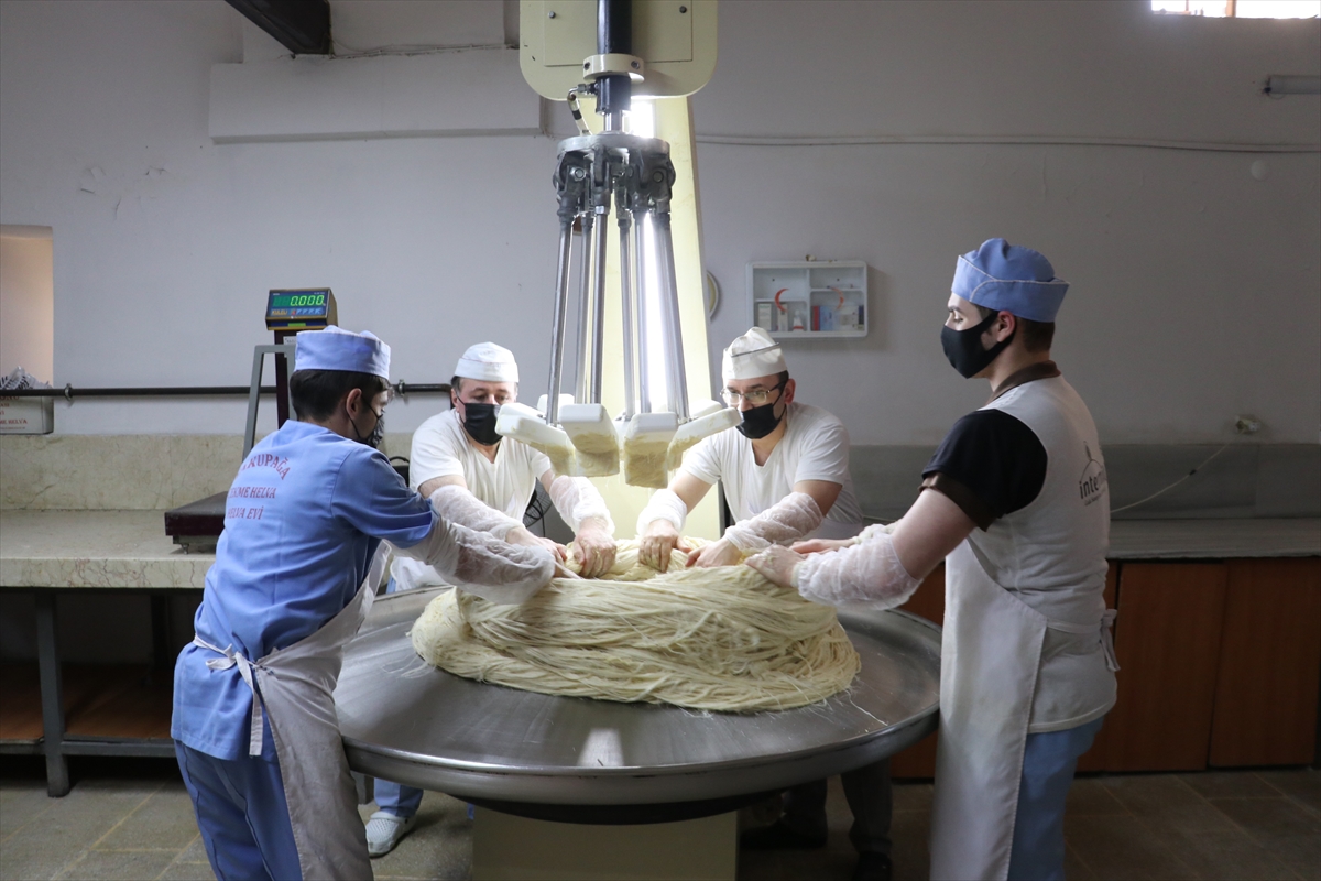 Çekme helva yapımını izleyen TÜRSAB heyeti, daha sonra pastırma, tirit ve banduma hakkında bilgi aldı.