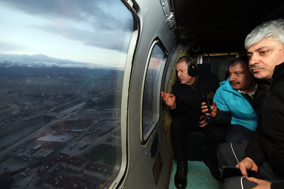 HATAY (AA) – Enerji ve Tabii Kaynaklar Bakanı Fatih Dönmez, Milli Savunma Bakanı Hulusi Akar ve Sağlık Bakanı Fahrettin Koca depremin etkilediği Hatay merkezdeki arama kurtarma çalışmalarını havadan inceledi.