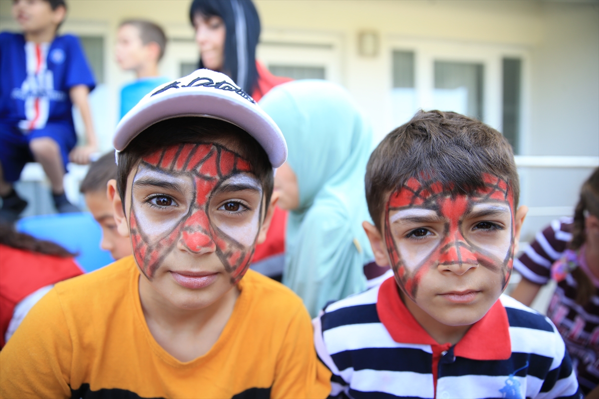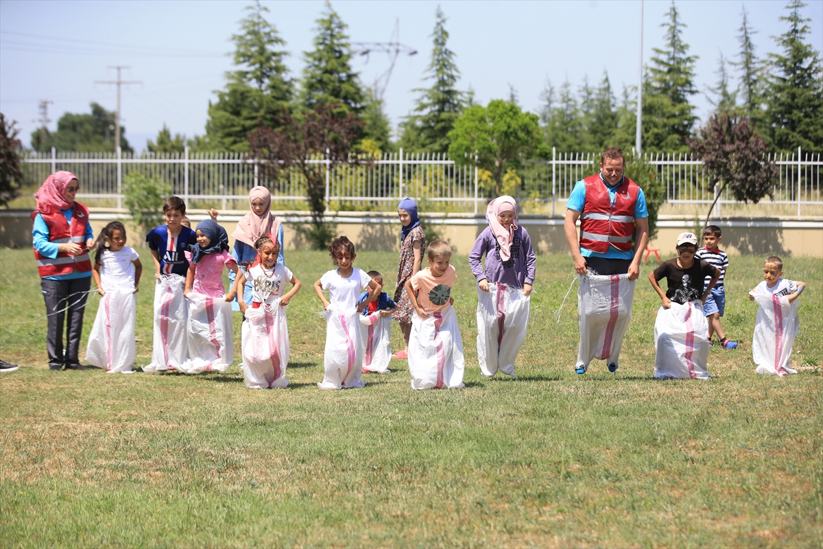 Görevliler çocuklarla zeka oyunları başta olmak üzere, satranç, futbol, çuval, halat çekme ve yumurta taşıma gibi oyunlar oynuyor.