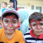 İl Göç Müdürlüğü yetkilileri günün büyük bölümünü yurtta kalan savaş mağduru 158 çocuğa ayırıyor.