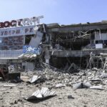 Saldırıda, "Vostorg" adlı alışveriş merkezinin binası kısmen yıkıldı.