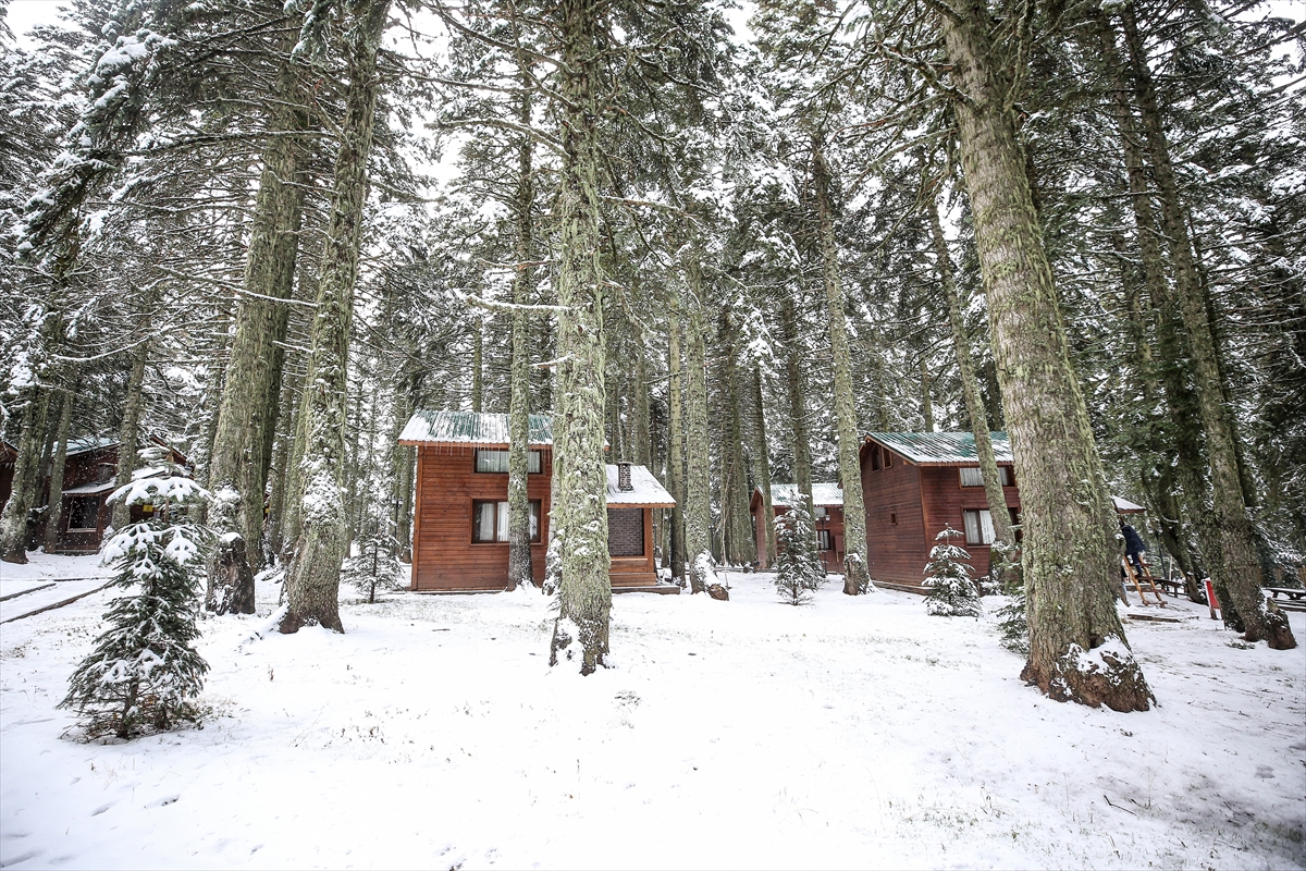 Çobankaya Karinna Orman Köşkleri Ön Büro Müdürü Harbi Türk, AA muhabirine, ahşap evlerin bulunduğu bölgede mevsimin ilk kar yağışlarıyla kış sezonuna başladıklarını söyledi.