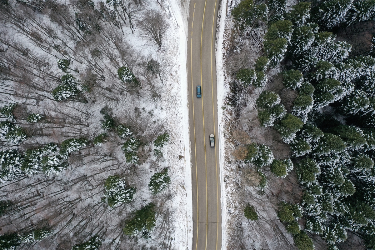 Uludağ, eteklerindeki çevresi çam ağaçlarıyla kaplı kara yolunu kullanan ziyaretçiler için de yeşil beyaz renkleriyle keyifli bir güzergah sunuyor.